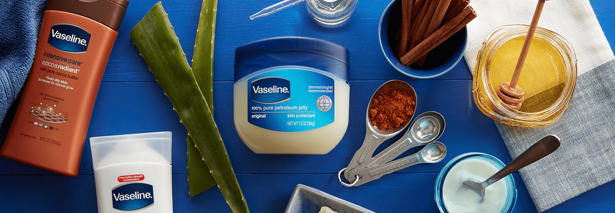 - Vaseline with Aloe Vera. Aloe vera is a natural plant gel that some studies suggest can help calm irritation. Mixing a small spoonful with Vaseline creates a lightweight blend that may support sensitive or sun-exposed skin.