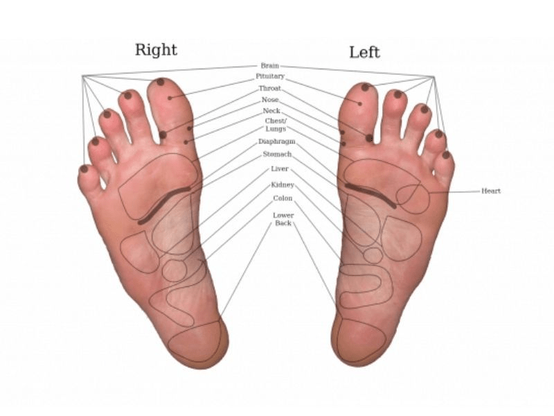Use the reflexology chart to guide: toes for head, arch for digestion. Always patch-test oils to avoid reactions.