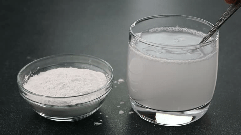 How to use: Dissolve ½ teaspoon of food-grade baking soda in 1 cup of water. Drink 1–2 hours before bed, away from meals.