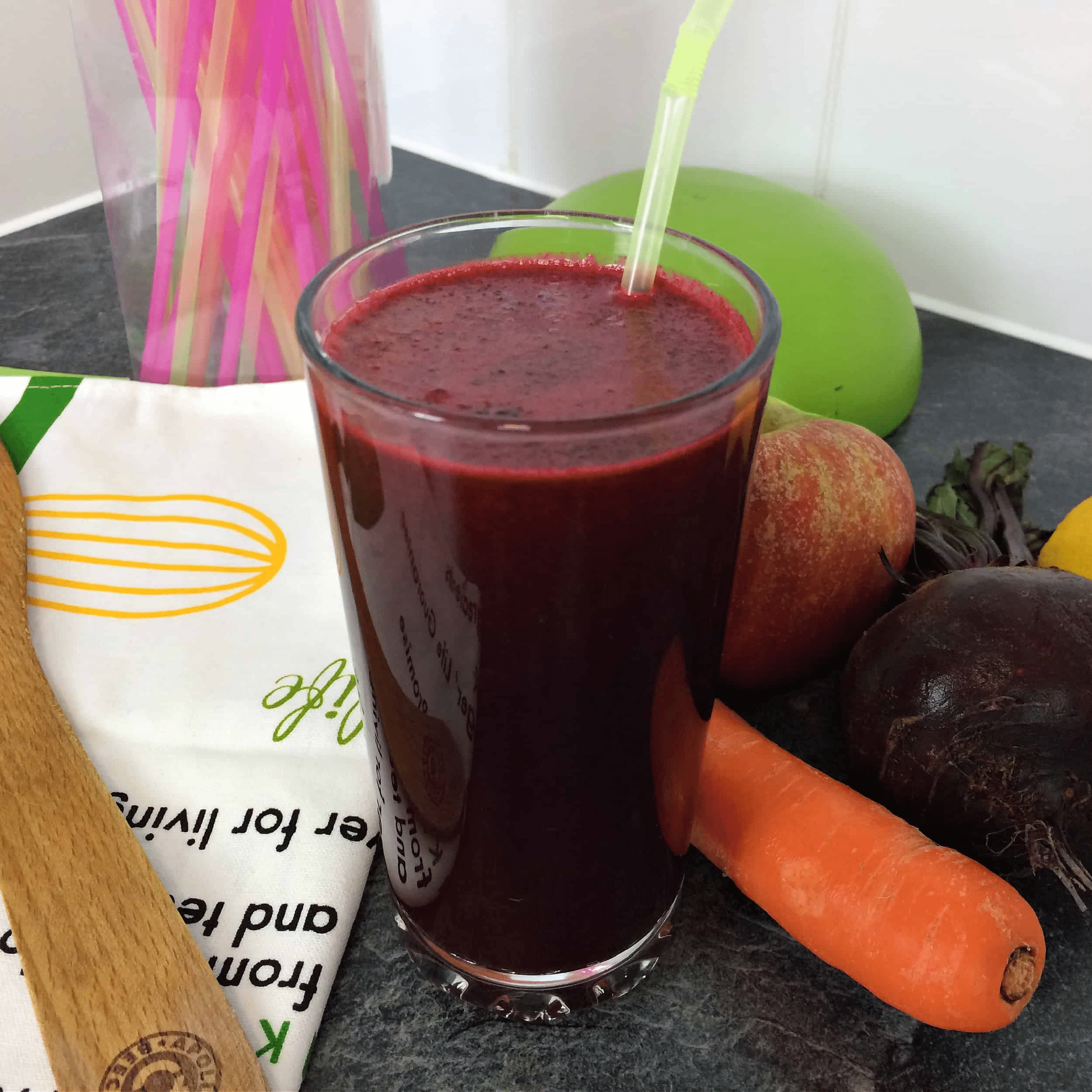 | 1. Prep | Wash 2 carrots, 1 beet, 1 apple. | Use organic if possible. |