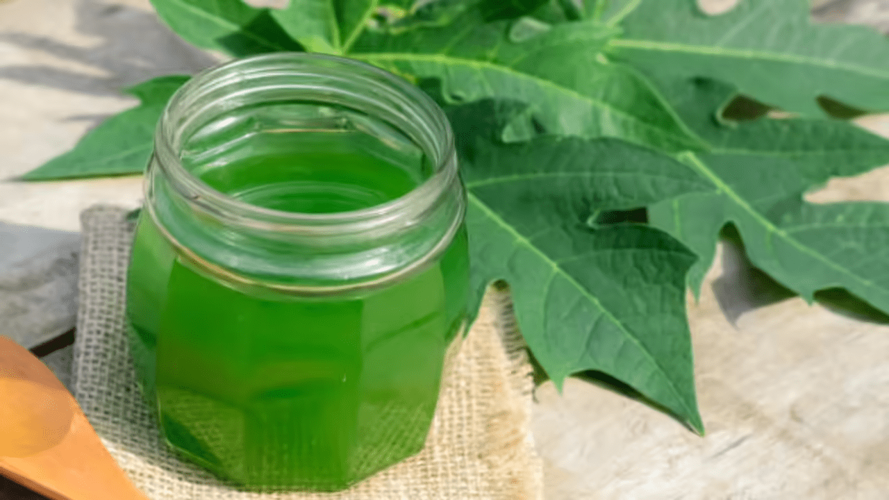 Ingredients: 3–4 papaya leaves, 1 cup water, 1 teaspoon apple cider vinegar
