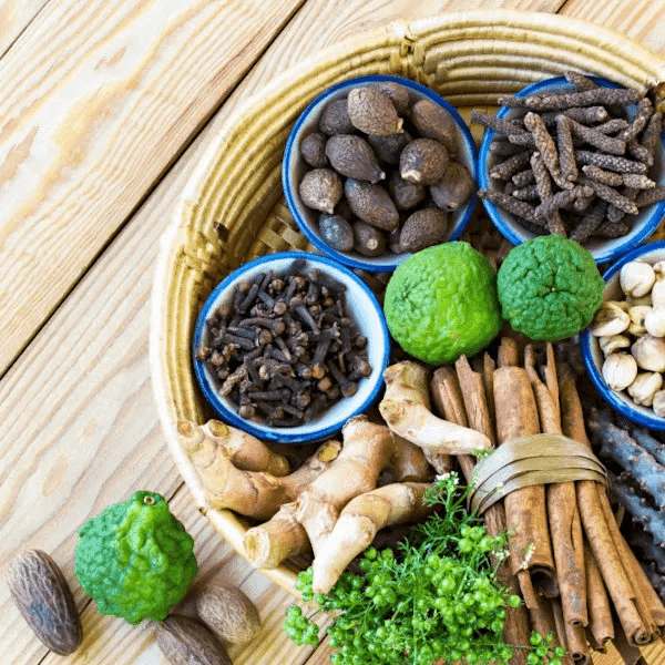 1. Gather ingredients: Fresh ginger, lime, garlic, cinnamon, turmeric, seeds, and cloves.