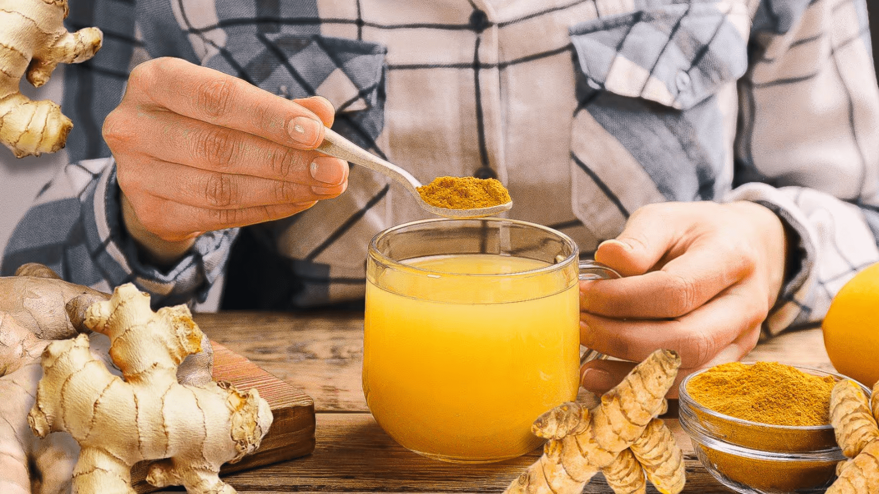 A simple supportive drink: Simmer turmeric, ginger slices, and crushed garlic in water, strain, and sip warm. Add honey for taste.